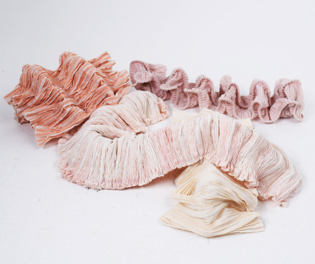 This collection aims to replicate origami techniques within textiles. This project showcases a unique way to bring texture and form to interior spaces. By using wire and pleating techniques, fabrics can be transformed into intricate shapes and designs. Natural dying techniques have been used to achieve a range of beautiful colours.